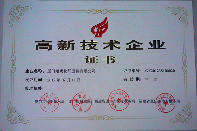 祝賀翔鷺化纖榮獲“高新技術(shù)企業(yè)”“納稅特大戶”稱號根據(jù)《高新技術(shù)企業(yè)認定管理辦法》和《高新技術(shù)企業(yè)認定管理工作指引》有關(guān)規(guī)定及全國高新技術(shù)企業(yè)認定管理工作領(lǐng)導(dǎo)小組辦公室《關(guān)于廈門市2012年第二批高新技術(shù)企業(yè)復(fù)審備案申請的復(fù)函》現(xiàn)確認廈門翔鷺化纖股份有限公司為高新技術(shù)企業(yè),頒發(fā)“高新技術(shù)企業(yè)證書”授予“高新技術(shù)企業(yè)”稱號。